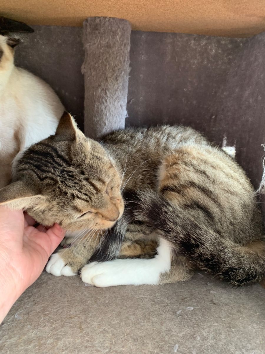 Lilly is a 2yr old brown tabby & white little girl looking for her forever home. She came into care with her sister, both pregnant and has been a wonderful mum. Now that her kittens have been adopted, it’s her turn to find a forever home. This beautiful girl spends her days curled up on her scratching towers waiting for affection. She loves her head rubs, is loving and gentle, and has fitted in well to foster life amongst the other kitties in care. She comes desexed, microchipped (#991003000430012), vaccinated, wormed and with flea prevention. Located at Gorokan for Claws n Paws Rescue 💗