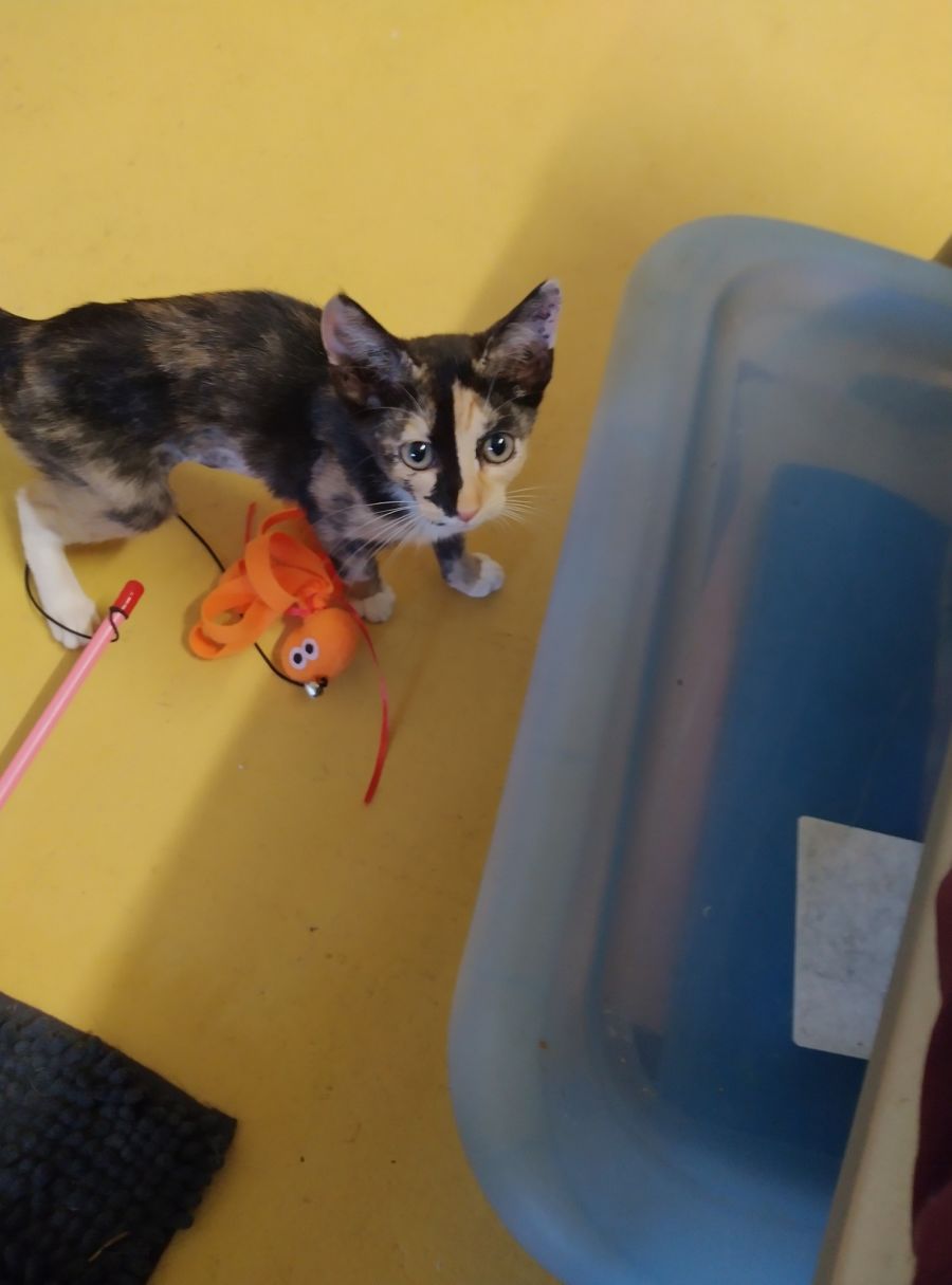 Muffin can be shy at first but she loves to watch her brothers play. With some gentle coaxing with a toy she soon began playing & really enjoyed herself. She is a real sweetheart