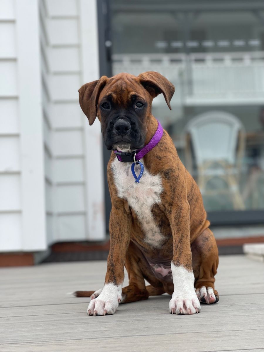 Meet Ryka, a brindle 11 week old Boxer X. Ryka is a loveable pup, very curious, playful and gentle and loves cuddles with his foster care family which includes adults and children.