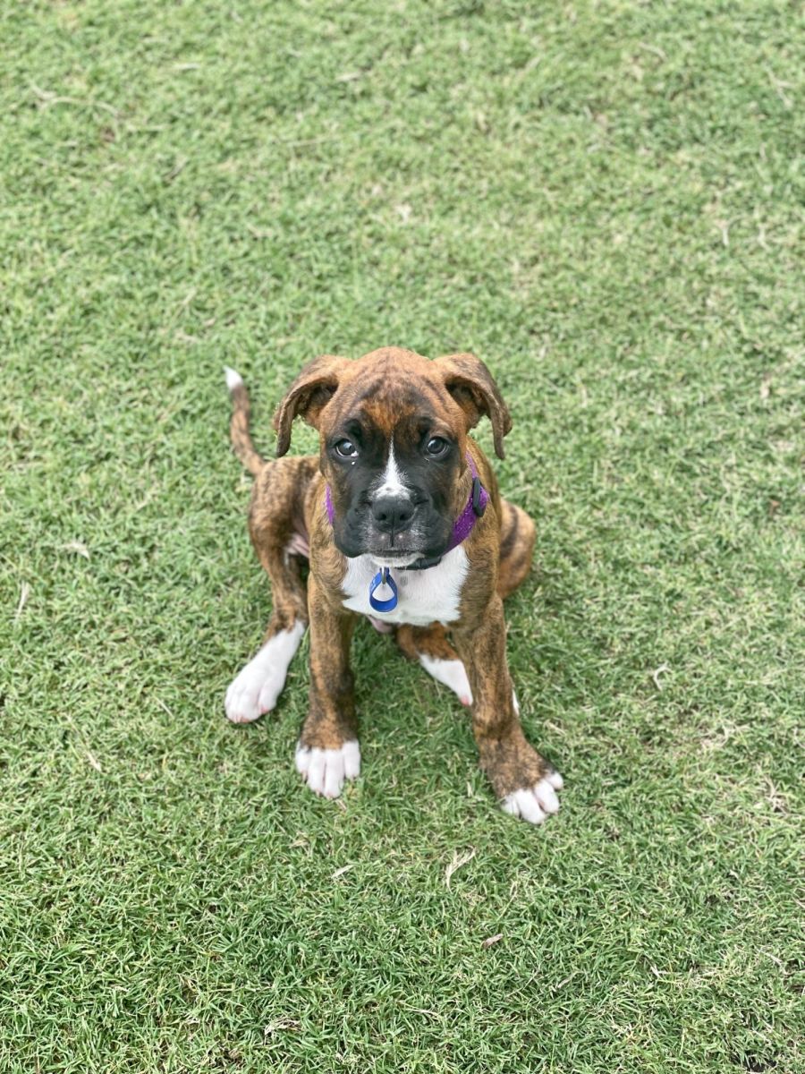 Meet Buddy, a brindle 11 week old Boxer x. Buddy is a loveable pup, very curious, playful and gentle and loves cuddles with her foster care family which includes adults and children.