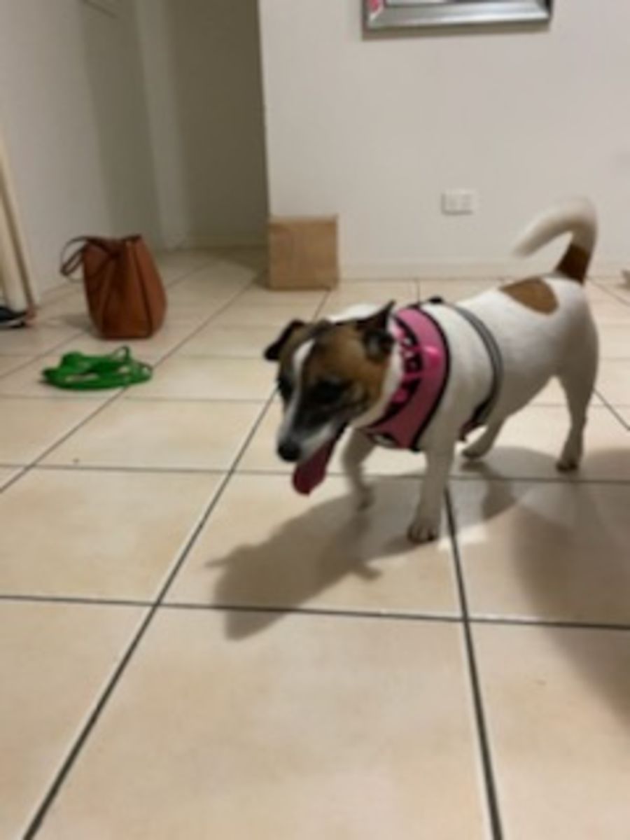 Scout is an adorable girl, very affectionate, very smart, completely house trained, great for an apartment. Scout can be a bossy-boots with other dogs, so much better as a single girl. She’s a typical JRT, they need smart people who are invested in them and their well-being who provide physical and mental stimulation. Please send in an application with lots of information