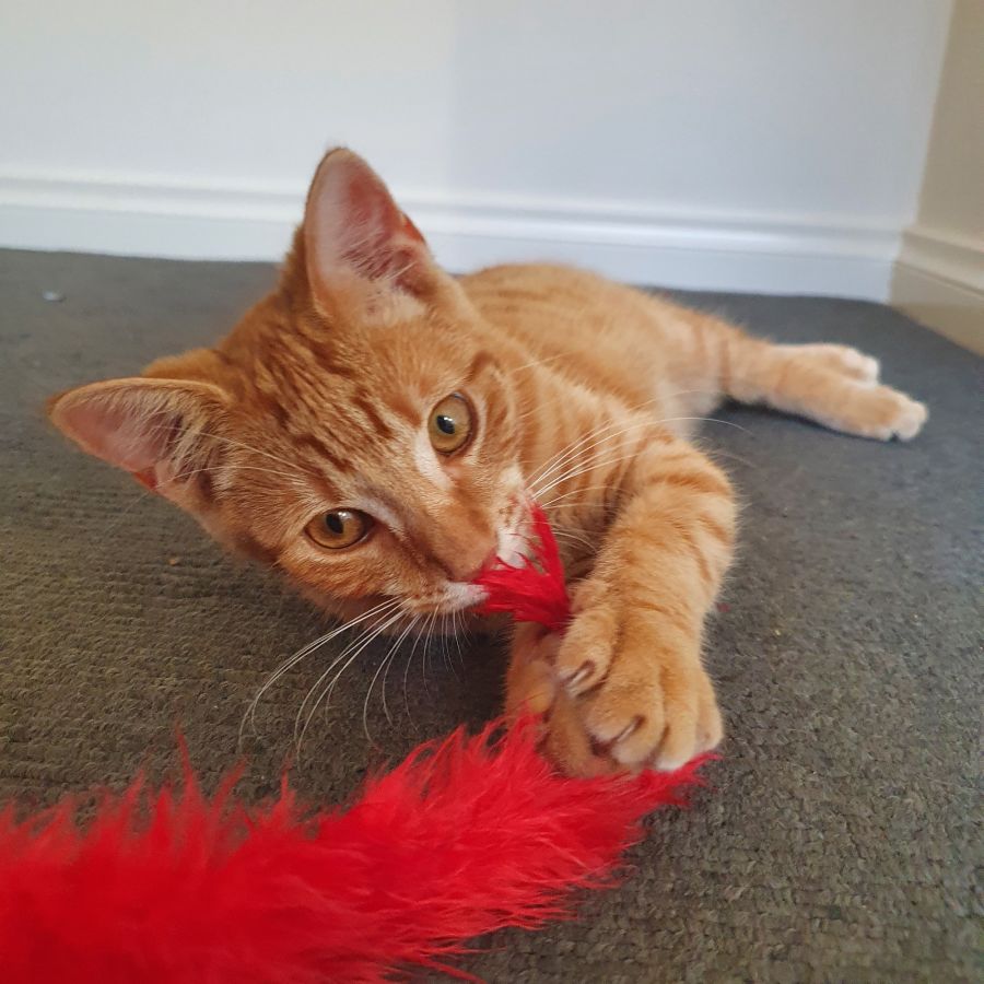 The staff have said that I can play a bit rough as I have a very high prey drive. This means I tend to bite things that move including hands and feet. I can be easily redirected onto stuffed toys to get this frustration out in a healthy way. It would be best if I was an indoor only cat in a household with no young kids since I wouldn't want to hurt our native wildlife or small kids in any way.