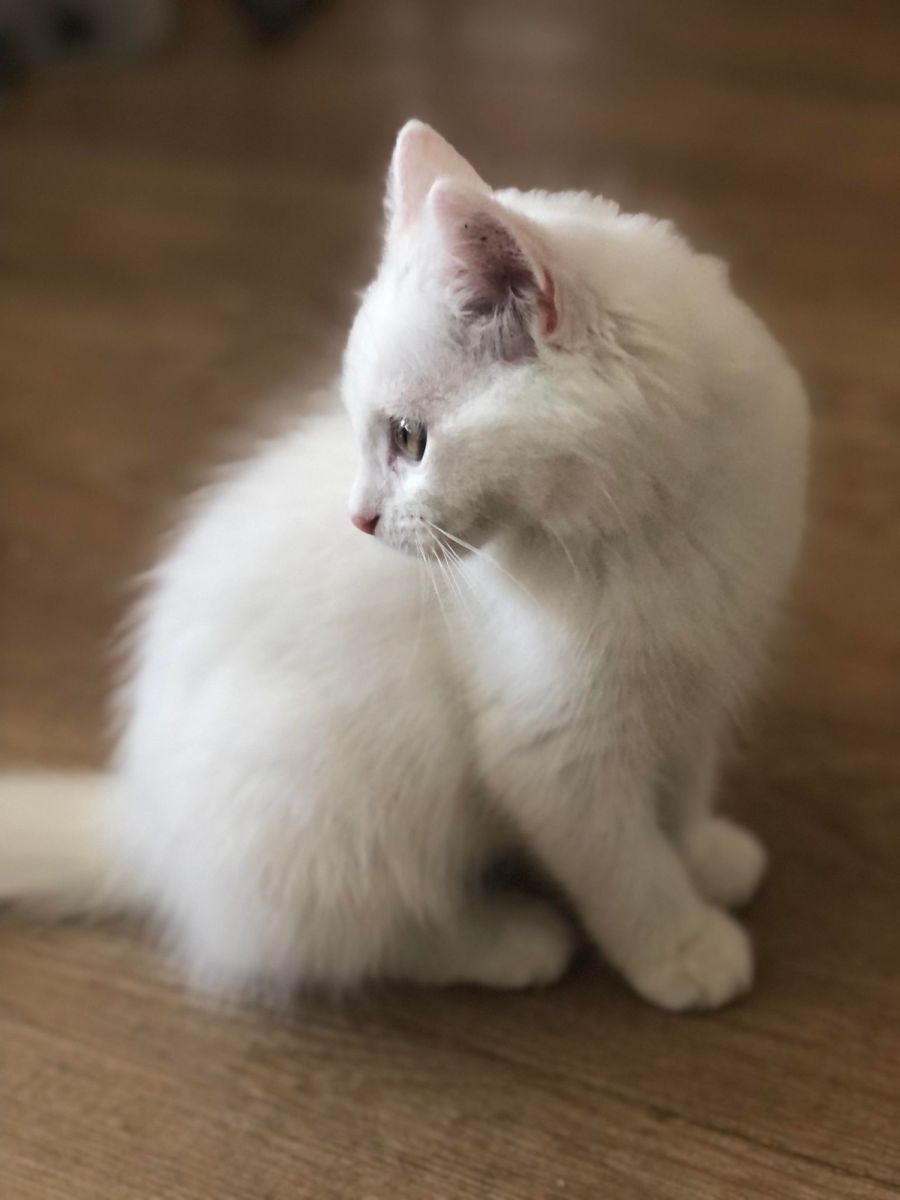 Winx is extremely beautiful - She has a medium/long white fluffy coat with a little black dot on her head.