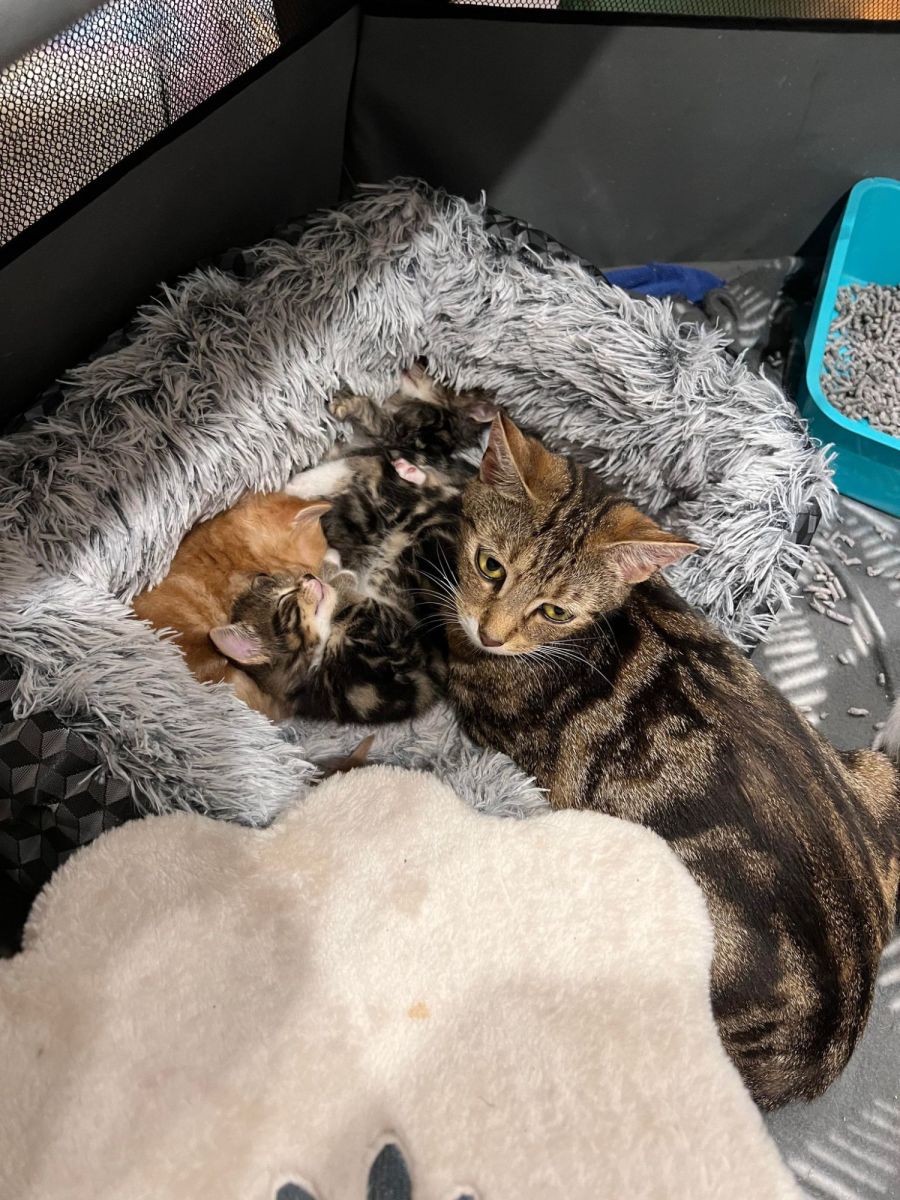Poppy is approximately 12months old and has been an amazing mother to 7 kittens (3 of her own and 4 she surrogate).