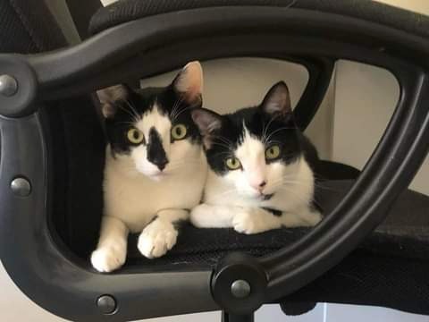 These guys are inseparable. Sylvester has had a partial tail amputation and Spot has an extra long tail.