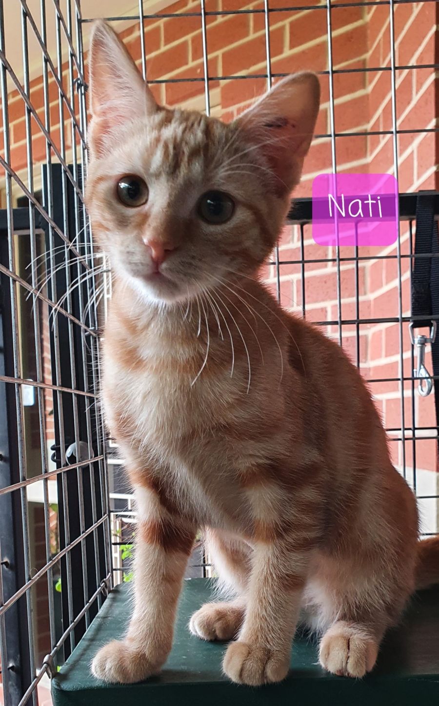 Nati goes to her new home flea and worm treated, desexed, microchipped and had his first vaccination. Her adoption fee is $250.