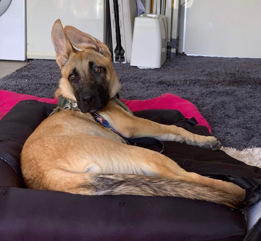 He is a fast learner, sits very nicely waiting for a treat. He has learnt ‘ down’ and he knows to stay when someone is going in and out of the front door. He loves to know what’s going on and be a part of everything, and will follow each member of the house around. He’s extremely affectionate, loves a cuddle and will happily fall asleep with his head in your lap. He loves his morning cuddles and is a massive cuddle bug! Tyke has been living with an older cat, whom he’s very respectful of, he has no problem eating with him and is happy to sleep on the same bed! Tyke has two fur foster sisters whom he just adores. Tyke will wait at the door you leave to go out through, until you return and is very excited and emotional when you come home. He definitely needs a fur sibling to keep him company.