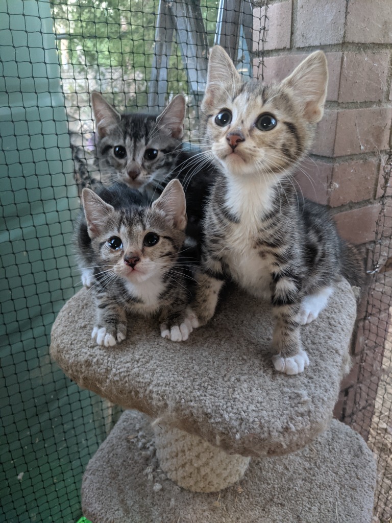 This little trio is 11 weeks old now, though they're petite kittens who are quite small.