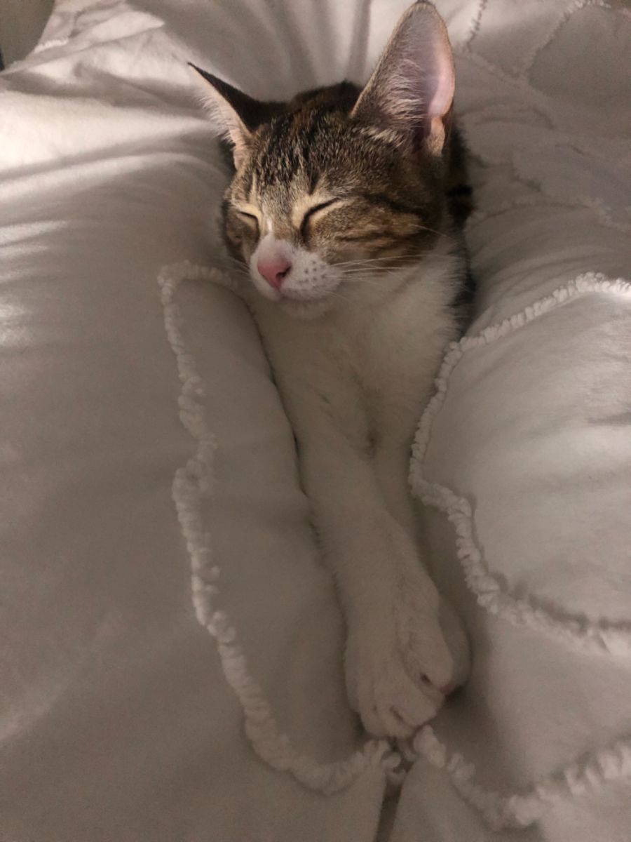 Milly is super loving, very playful with such a beautiful nature. Milly will be the best sleeping companion. She loves sitting on the window sills in the sun and watching the world from safely inside.