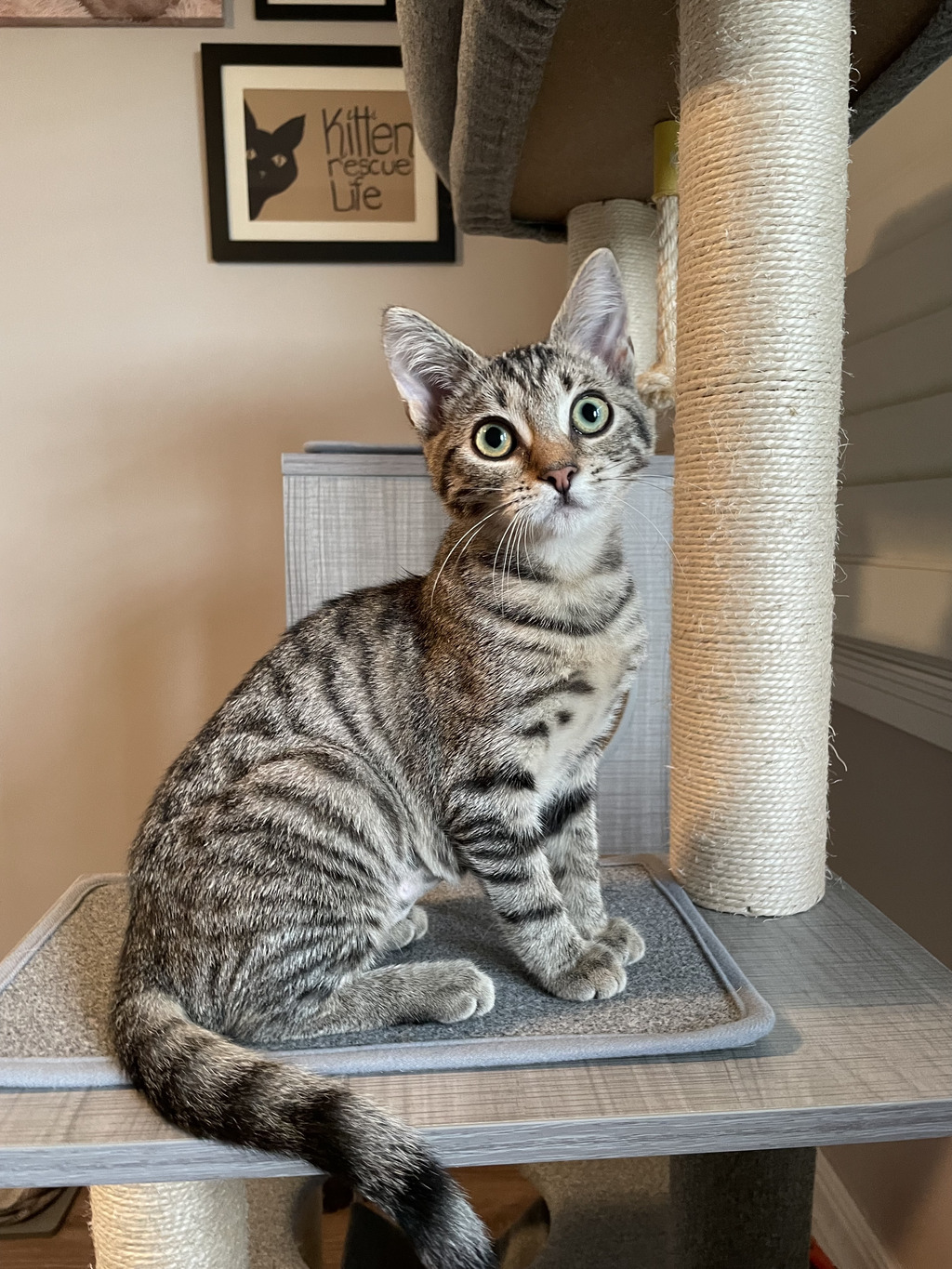 Introducing Tabitha, a little sweet heart. Super affectionate but shy to start with but with lots of patience and treats and her little bee toy Tabitha will be your new best friend in no time. Tabitha will need time to settle into your home (possibly with another cat as a buddy.) No dogs or young children (toddlers) please. Tabitha will need someone who understands she will need time to trust & is able to spend lots of quality time with her.