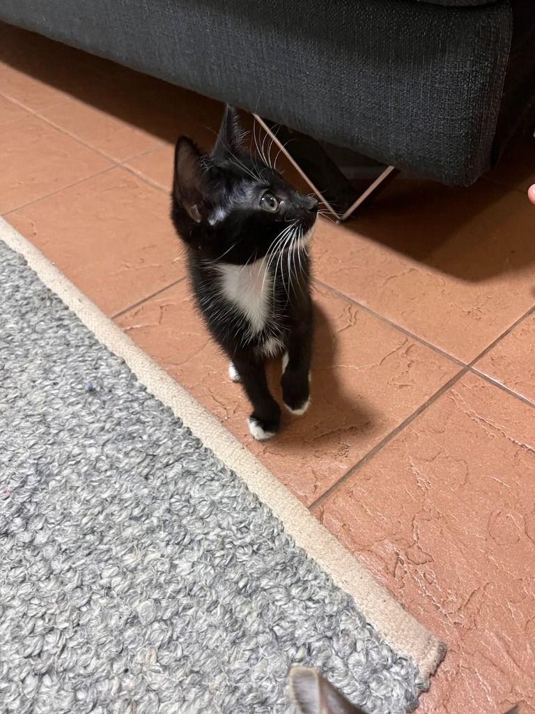 Hello, I go by Tyler, and I am a young, energetic kitten who loves playing and cuddling!