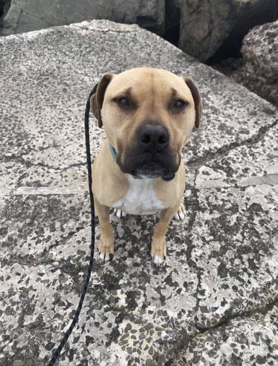 Looking to for his furever home is this beautiful boy, Milo, a 5 year old American Staffy x Mastiff 🐕 unfortunately Milo just needs more time & space than he is currently receiving.