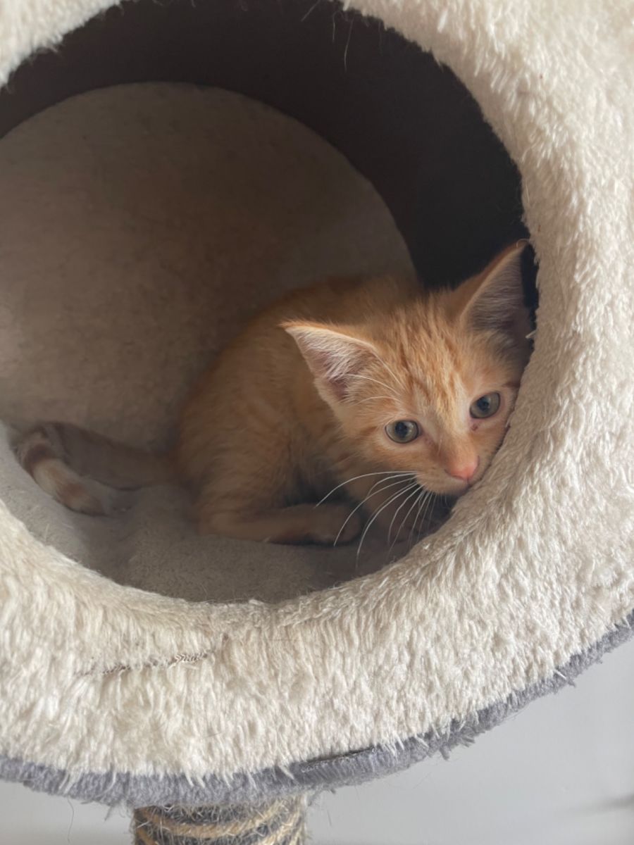 Meet little gingernut who is the sweetest female ginger around. She is playful, confident and very affectionate. She enjoys playing with her siblings and other cats in foster care. She loves to play with cats toys and you and enjoys a snuggle on your lap!