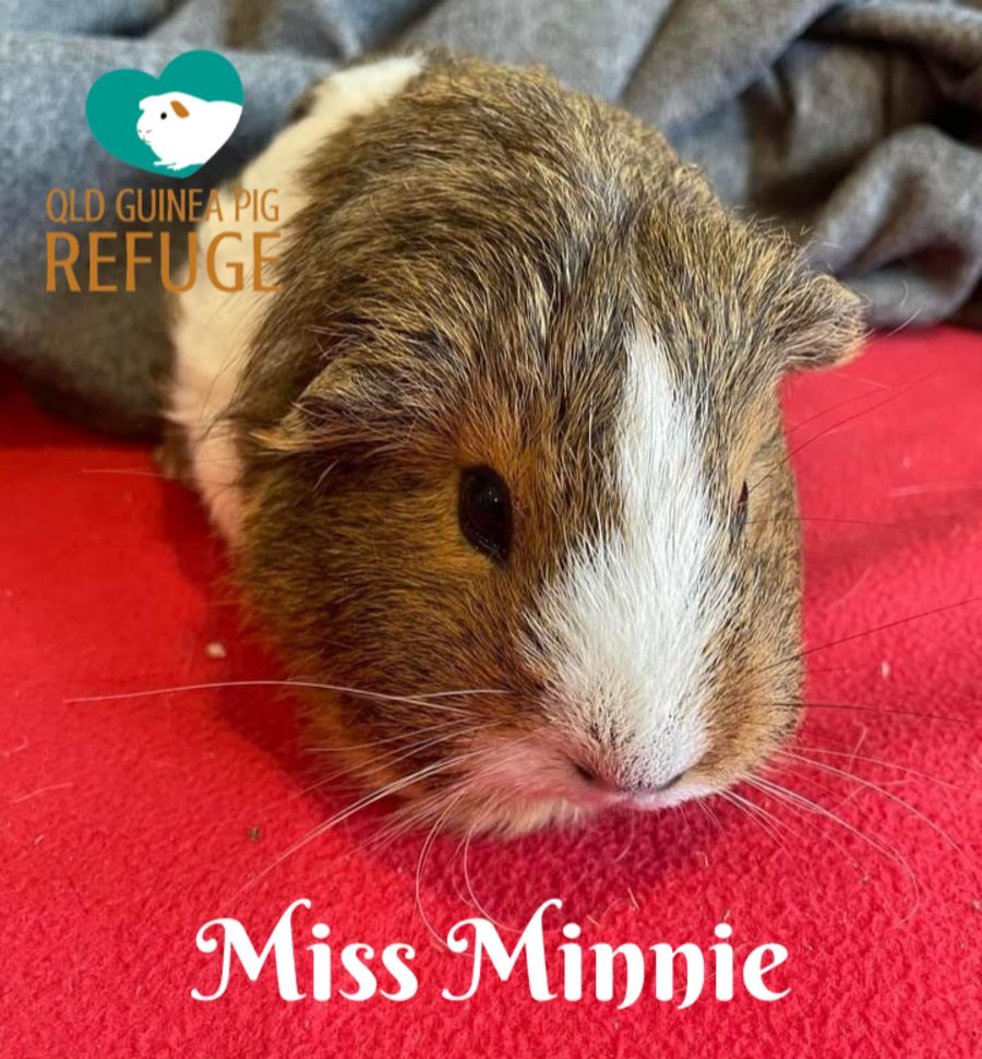 Please note that if you would like to adopt Miss Minnie, you will need to bring your guinea pig to an open day at Albany Creek for a meet and greet as not all guinea pigs will pair successfully. At four years young, Miss Minnie is considered a senior, as the lifespan of a guinea pig is five to seven years. With good care and nutrition, they have been known to live longer.
