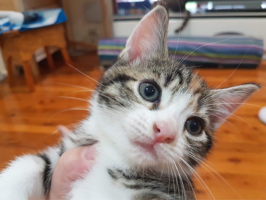 Alice is very sweet and LOVES her humans. she will run to the door as soon as you open up the bathroom (where she sleeps with Mum and brother) and will dart to get past you to join into the happenings of the house. Alice is quite a curious cat and likes to get into anything she can, she especially enjoys her automatic kitten wand toy and wrestling with her brother - while smaller than him she is tenacious and usually ends up on top. Alice demands attention and will climb her foster parents legs if she feel she is being neglected. Alice will approach for a cuddle and nap and when she's worn herself after playing and would be great companion for your own furry friend.