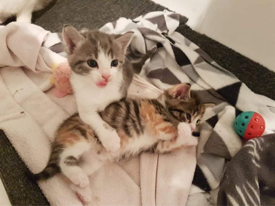 Jasper is a very sweet little guy who loves to play and romp with his sister and his foster (cat) brother, he would adapt well to being a companion to your own furry friend very well. Jasper loves crinkle toys and balls with bells - anything that makes a noise really. Jasper is a chill little guy who can be found sitting watching the other cats and humans in the home with a curious, almost analytical, look. He is has a super soft and thick coat and will surely be a huge cuddle-bug as he grows up. He likes a cuddle and will fall asleep in your arms if given the chance.