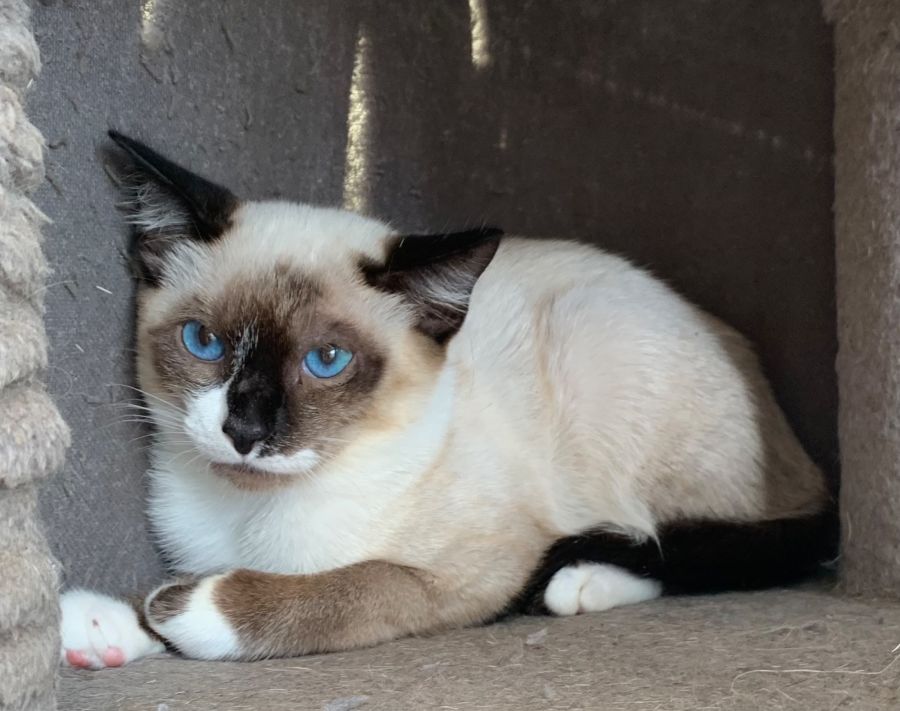 Atticus is a 5 month old Siamese X boy looking for his forever home. This handsome boy spends his day playing on the scratching towers, racing around with his feline friends, and exploring his new world. When playing is done, he retreats to the towers for a nana nap before dinner time. He is a bit wary of new people, but is easily handled and enjoys a good head rub. He would suit an older children household or a quieter home in general. He is litter trained and not a fussy eater. He comes desexed, microchipped (#991003001415764), vaccinated (age appropriate), wormed and with flea prevention. Located at Gorokan for Claws n Paws Rescue 💙