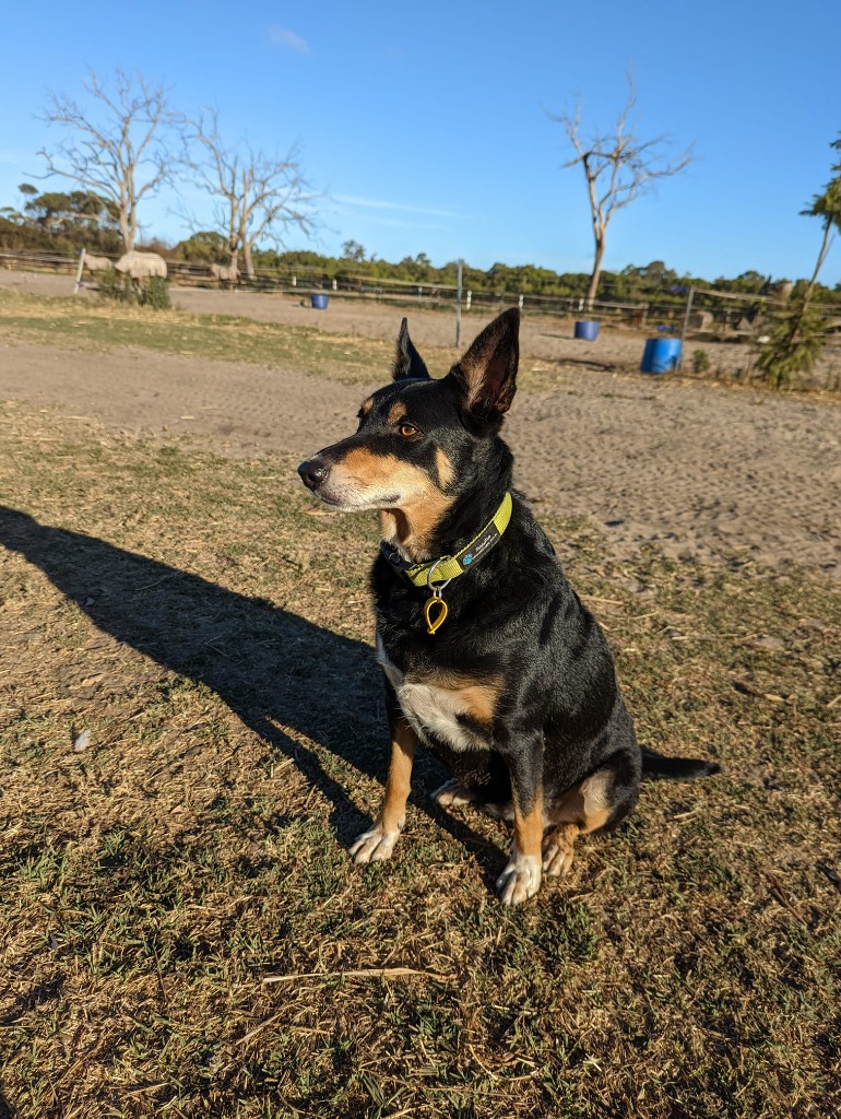 Heidi is your typical and stereotypical farm dog. Active, energetic, smart, loyal, and unsurprisingly a kelpie or at least mostly a kelpie. Given her high level of energy, having some space she can run around would be recommended and she would really benefit from somebody who is happy to take her on lots of walks. She enjoys the company of other dogs and is eager to play and is able to peacefully co-exist with her fellow farm animals. Note: One thing she really enjoys is car rides. Taking her on car rides is highly recommended.