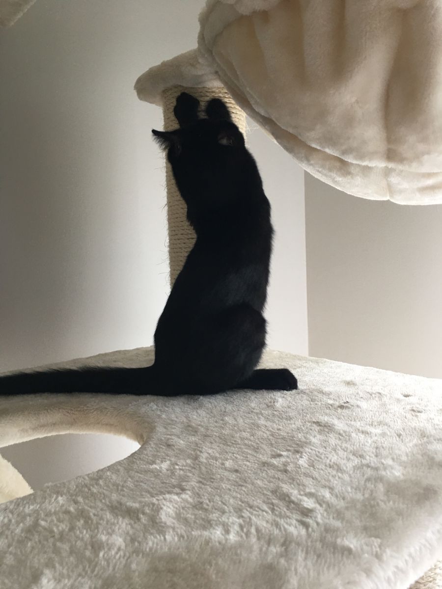 Angelis enjoys playing with other cats & kittens, especially when they’ll play chasey up and down the hallway! Toys are also lots of fun 😊 He does enjoy pats and will allow a bit of a cuddle, but play time is much more exciting for a young slinky kitten!