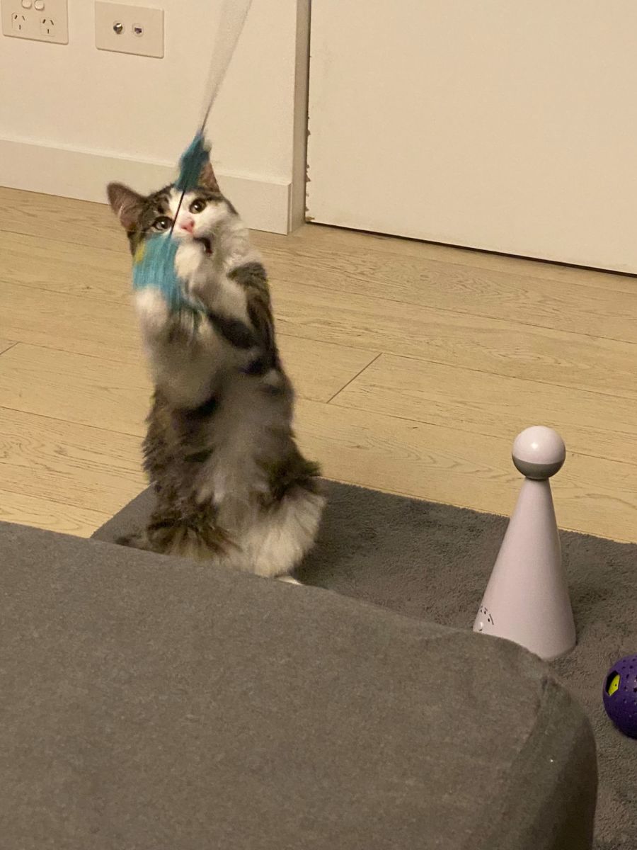 Chickpea is a cloud of fluff and love. She's full of energy, playful, and a little crazy. She loves playtime almost as much as she loves cuddles and snuggles with her humans!