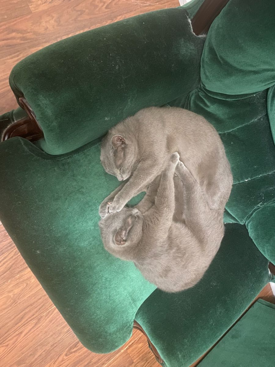 Medusa and Euryale are 15 mth old sisters, inseparable and full of beans. Euryale is the quieter, more responsible older sister, who gets concerned when Medusa takes risks. She used to clean up after Medusa until she learned how to do it herself. They give each other baths, washing each other’s faces at the same time. They love hooning up and down the staircase and when they get to know you, will roll over and over for joy.