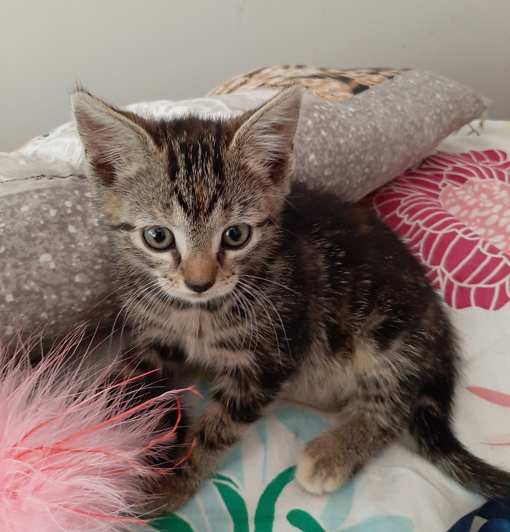 Meet Angie, a tabby kitten that is big on personality and purrs. Angie is in foster care at Elderslie and currently is enjoying family life but it is now time for her to find her own full-time family and leave her foster home. If you would like to give Angie her forever home, please apply now for a pre-adoption application.