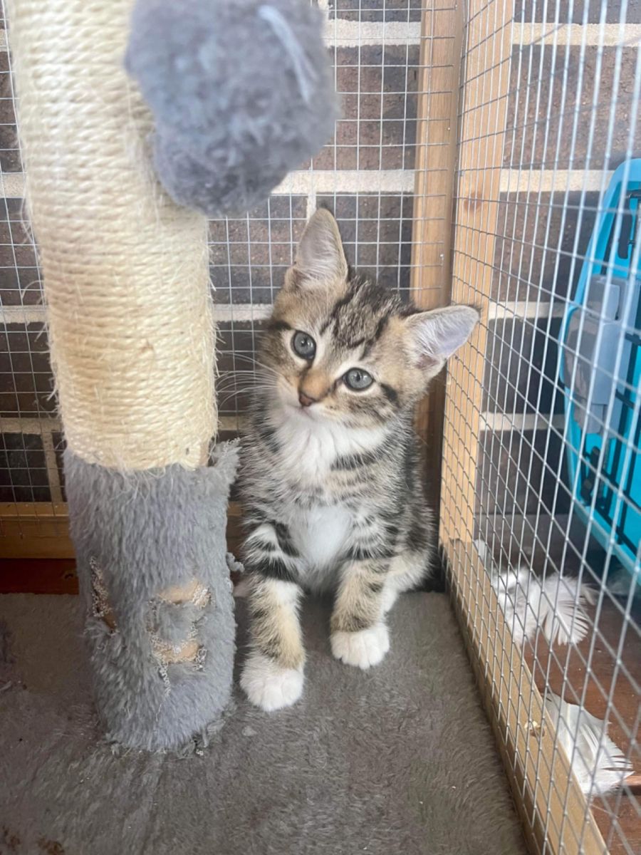 My foster mum said I’m a funny little girl who loves running around like a crazy cat. She’s always laughing at the weird things I do. I also have a little bit of sass according to my foster mum. I love playing with my toys and chasing the lazer light. I’m also a big fan of playing with balls of string. I love love love rumbling with my brother and sister and I like to scare them by pouncing on them when they least expect it.