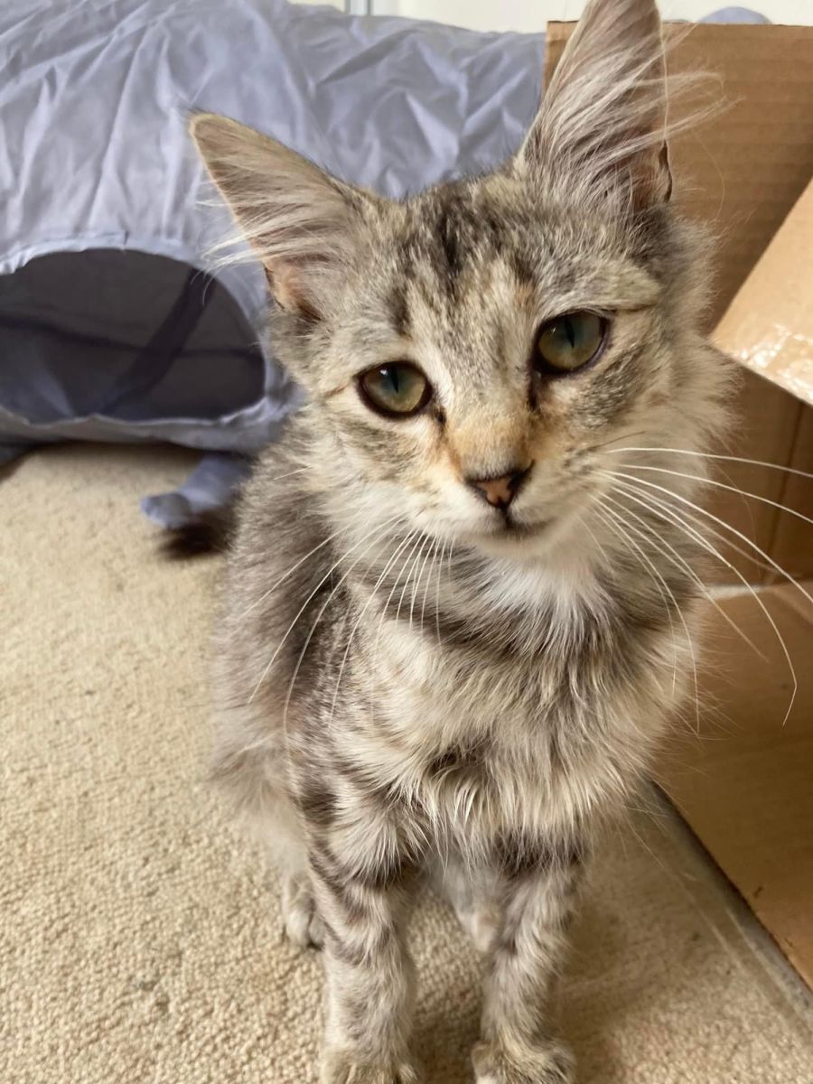 ✨Banksia is a torbie (tabby with tortie colouring) domestic medium fur female. She’s got a gorgeous peach patch on her forehead.