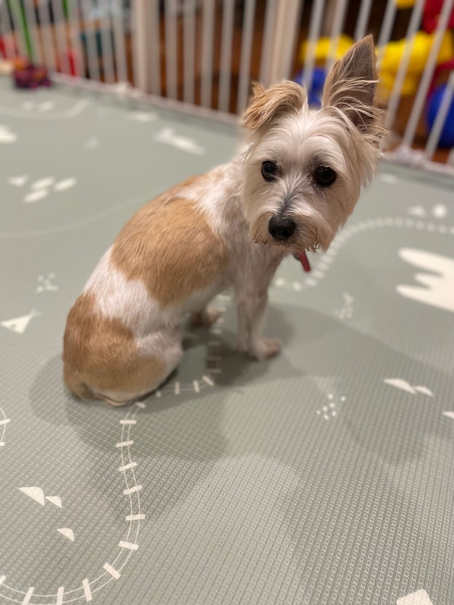 Roxy is a gentle indoor companion who wants to curl up at your feet to make sure they are safe. She loves curling up in a patch of sunshine, or on the softest cushion on the couch. This girl is happy daydreaming for hours. Once she hears a suspicious noice, she’ll make sure to alert you. This mostly happens when another dog or cat passes the house. Roxy is a lapdog, than can easily spend all day soaking up pats and scratches. If you tell her to go, she understand to hop off your lap to find another spot to snooze. Roxy is a well-mannered girl, that knows the basic commands: sit, go to bed and she can take herself outside to the toilet through a dog door.