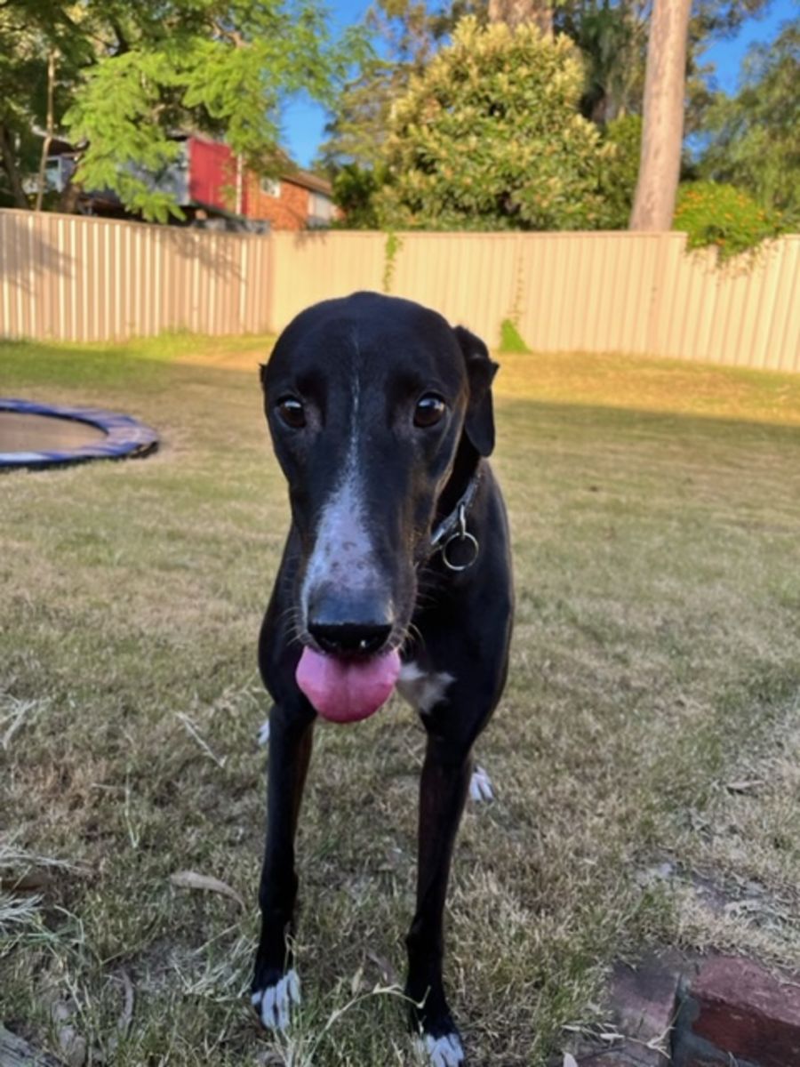 Since coming into care Billy has adapted extremely well. He’s settled in with two other greyhounds and a 5 year old human. He’s shown minimal interest in fluffy toys and is very respectful. When he’s not snoozing inside with his doggy he enjoys being outside lounging around in the sun. Billy is fully toilet trained and takes himself outside via the doggy door when he needs too.
