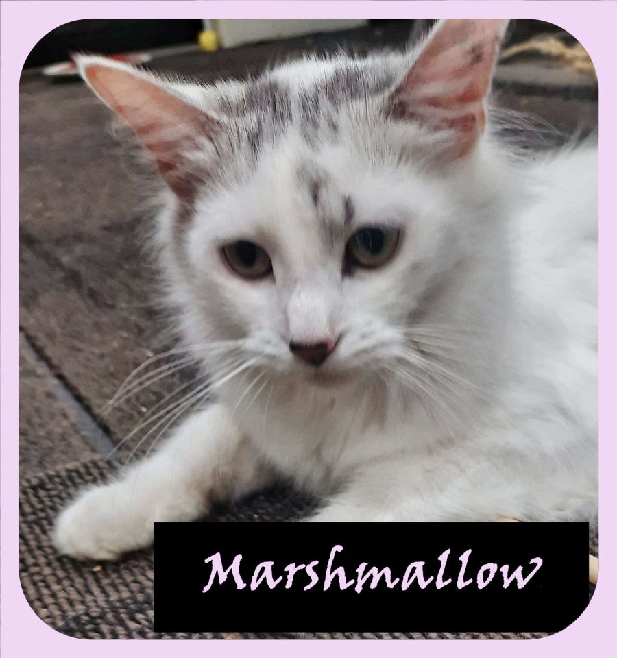 Meet the beautiful Marshmallow. This sweet lady is very affectionate and likes to be around you. Marshmallow is a gentle sweetheart who is friendly and is looking for a home to call her own after a difficult start to life.