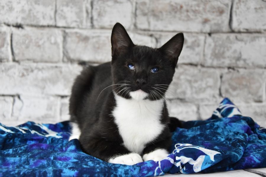 We would like to introduce you to our little “Batman”, or Batty as we affectionately call him. We think Batty looks just like Batman with his amazing coat pattern, but he is also brave like Batman because Batty was born blind. However, when you come to meet Batty you won’t think he is as you see him playing with the other cats.