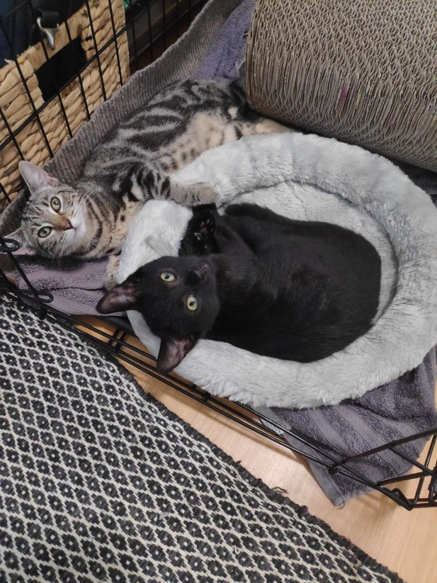 Jasper, a.k.a Jazz (black cat) and Monkey (grey tabby) are brother and sister and best friends.