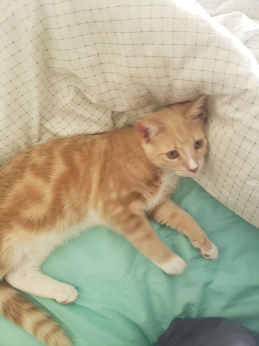 Ashlee is sweet with a squeaky little cute meow. She Is very cuddly and affectionate with The teens in the house and loves to sleep on their beds with them. She’s still too timid to explore the whole house but will get there once she’s in a stable home. She is used to Teddy and other cats but only is comfortable with her brother Rory.