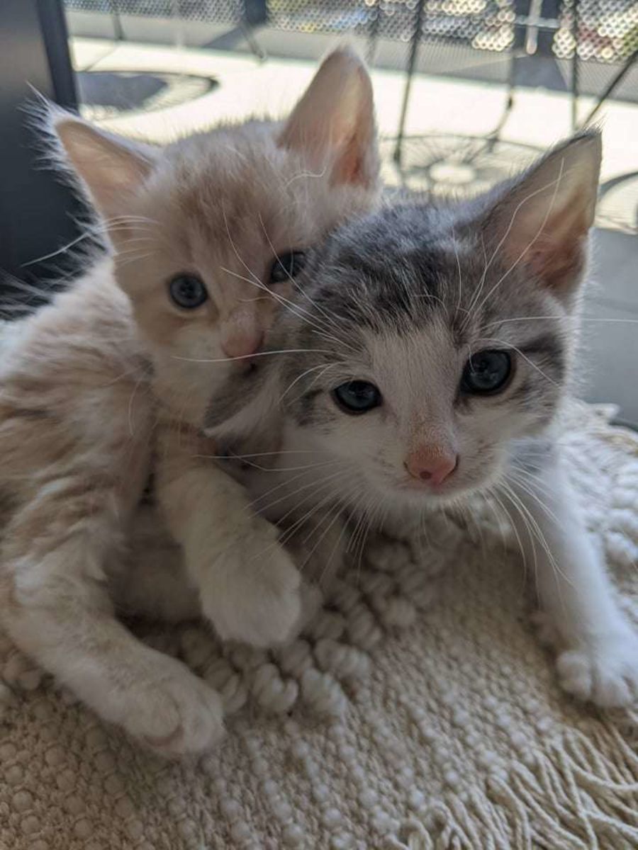 Bagel is the fluffiest, cuddly kitten in town! This little loaf of bread is always down for a nap on your legs or a snuggle on your shoulder. He is also very good at giving nose kisses.