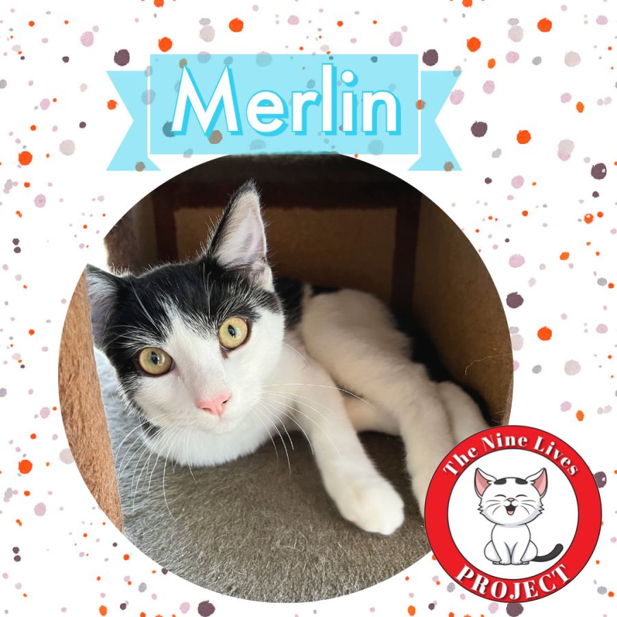Merlin is a bundle of energy who loves to do kitten zoomies and run around chasing toys but also will sit next to you on the couch while you are watching movies.