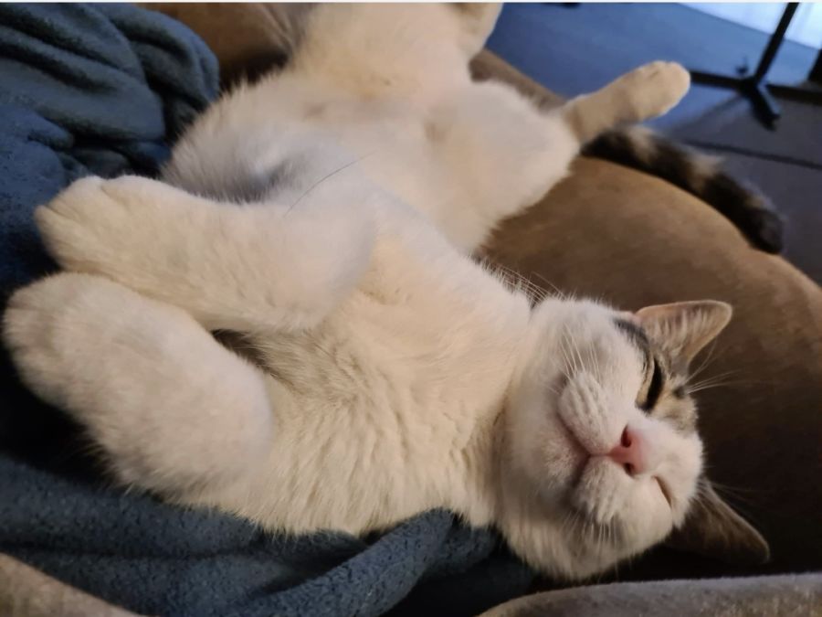Dhyana spends her day napping on the lounge and has recently taken to watching the birds on the tv and on her foster dads phone. She has also been known to LOVE head scritchies and can be quite the conversationalist when she wants to be.