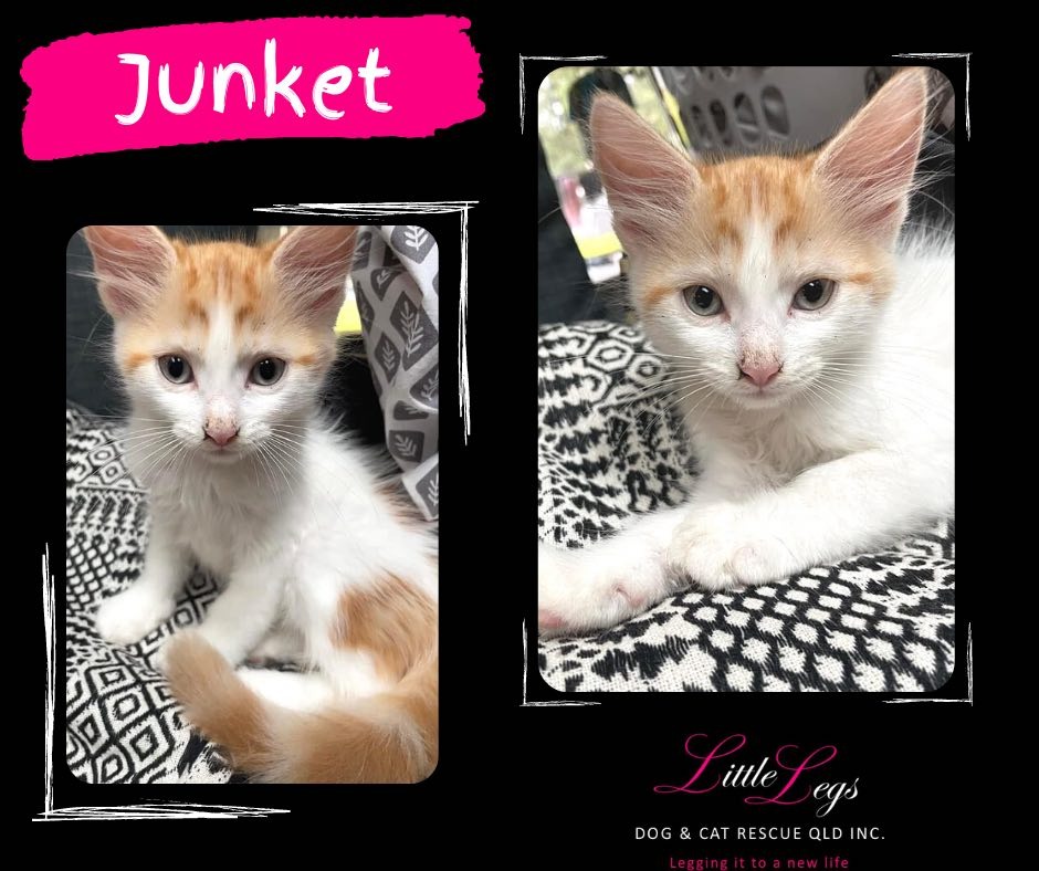 Hi, my name is Junket and I am still searching for a home of my very own. I came into care with my mummy and my 6 brothers and sisters. My whole family was rescued from death row. I have now moved away from my mummy and my brother has found his forever family so I am hoping it's my turn very soon. I live with another kitten who is so much fun to play with and a big cat. I love to hang out with all the people here. This house has a cat tunnel and it is so much fun to run and hide in there. I am an easy going, go with the flow kind of guy. I cannot wait to find my new family. I am very flexible on what that may look like. I just want to live with some people of my very own. If you have space in your heart for a cute ginger fluff ball, then look no further, I am here ready and waiting.