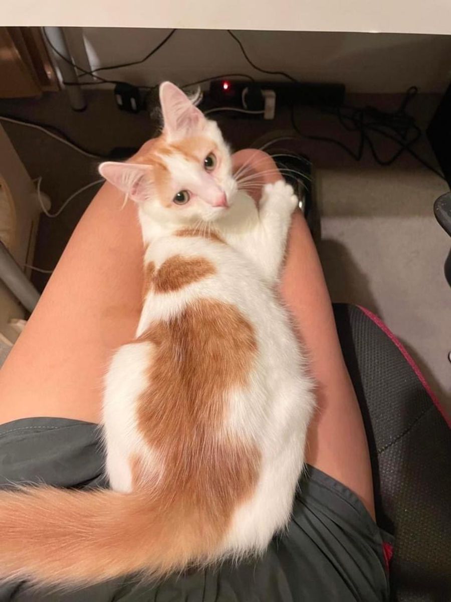 Like most street kittens Frankie definitely takes time to warm up, but once he does feel comfortable, he would meow for attention and roam around you until he’s given pats.