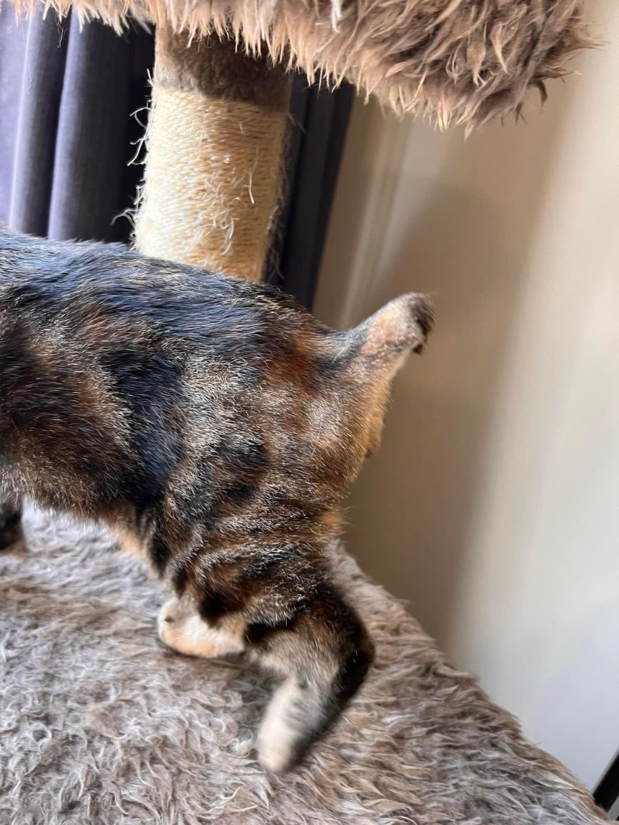 A few weeks ago we were asked to take on a cat who has been dropped at the vets after being found with her tail coming off. It was suspected to have been slammed in a door. She needed her tail amputated and the vets tried to rehome her from there to no avail. Our vet contacted us during the floods and we weren’t able to take her on and chances at the pound are slim. Fast forward a couple of weeks and here she is!