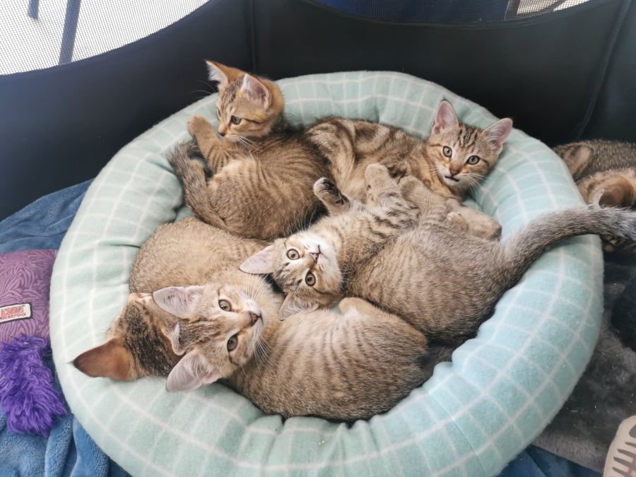 The kittens were born in foster care to a stray mum, and have grown up around other cats and a large gentle dog. They are very well socialised and adjust to new environments very quickly. Both are litter trained and were raised on Royal Canin kitten food, a mix of wet and dry food.