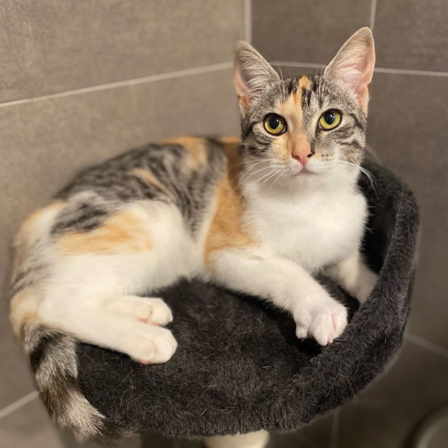 After being rescued off the street, Gwen is now keen to find her new home. If you’re looking for a cat with a personality to match her unique looks, Gwen’s your girl.