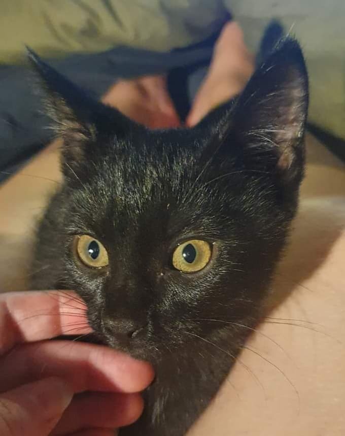 I am the most beautiful black kitty with the prettiest eyes. I am a loving and friendly girl who enjoys affection of any kind. I love to be held and love to climb on you and smoosh you. I get along with young children, dogs and other cats! I'd suit any home as long as they can keep up with all the affection I have to give. I have been hand-raised with love from 5 days of age. Now I'm asking for a kind family to give me a lifetime love.-