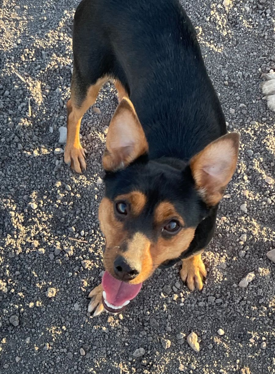 His name is Giuseppe, known as Seppy, and what a pocket rocket he is. Now firstly I must assure you, that even though his photos make him look like a Kelpie - he isn’t! He only weighs 6kgs! Hence we took some vids/pics of him with the big dogs at his carers home.