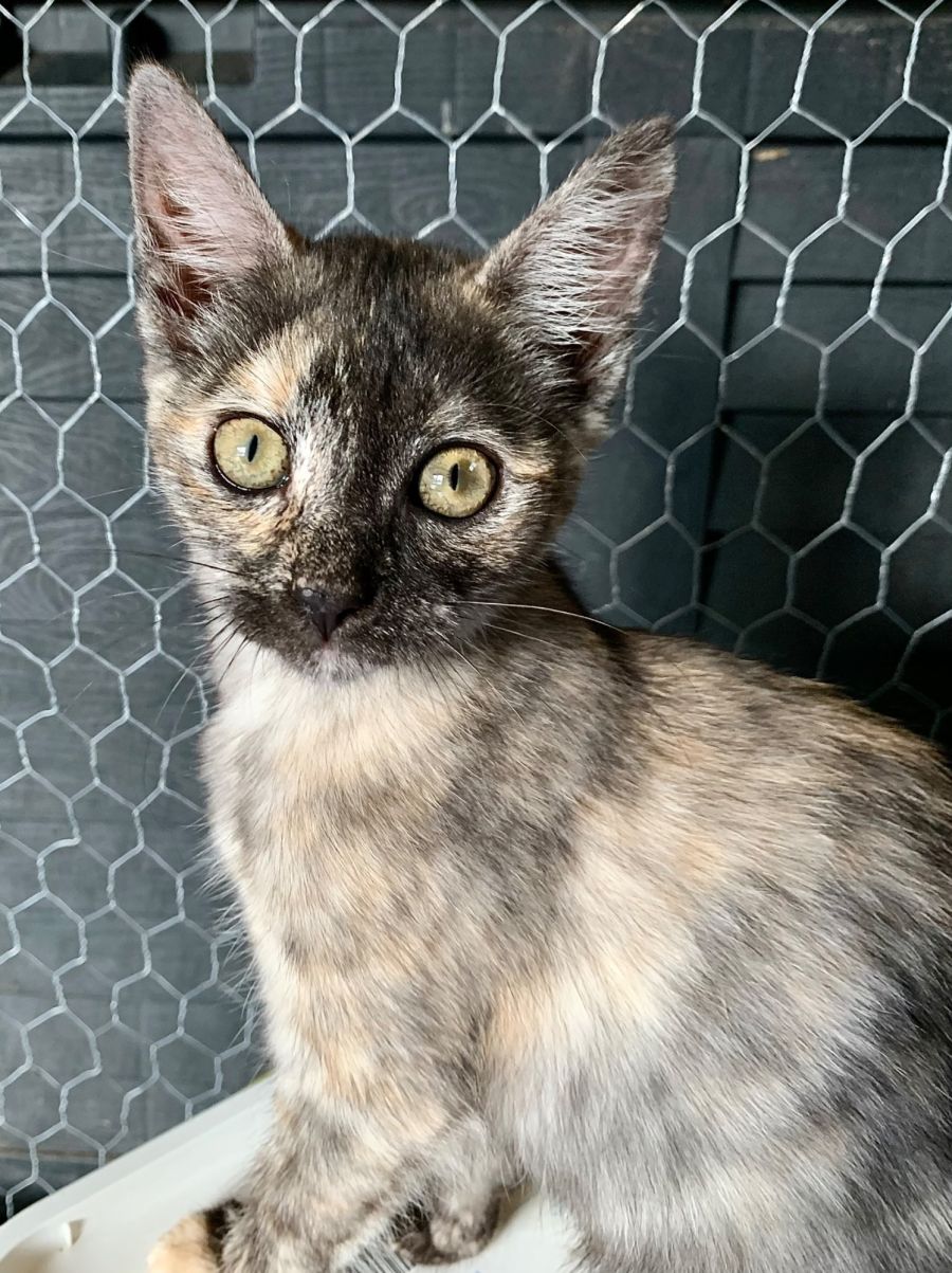 Nim is approximately 13 weeks old and came to us with her mumma Suki and 4 siblings. Nim is a stunning little lady with an inquisitive nature and gentle soul. She will happily follow her humans around while doing chores and enjoys company wherever she goes. Nim is also eager to be close to whom she feels comfortable, sitting by your feet or feeling confident enough to climb you until she’s perched closely on your shoulder.