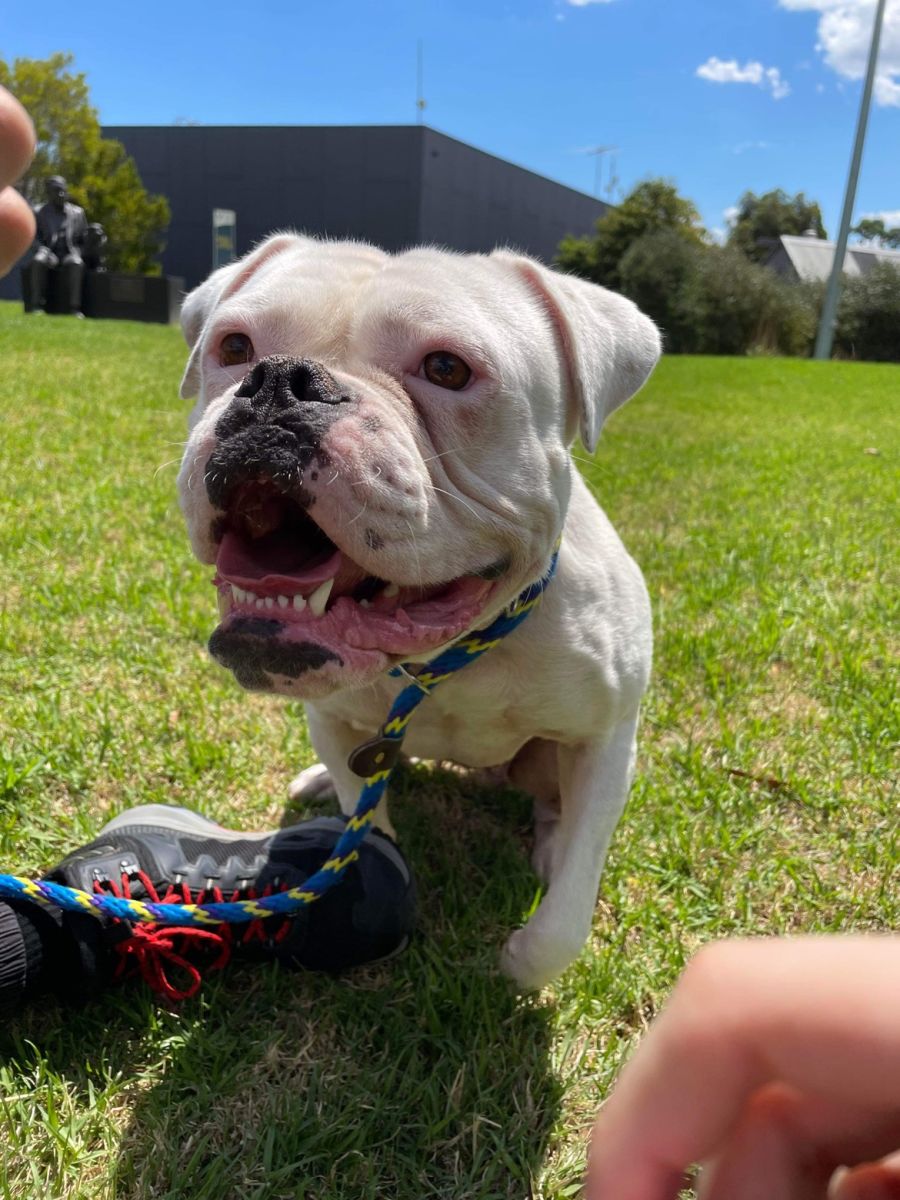 One of our volunteers had a visit to meet sweet Willa. Willa is smaller than we expected and only a medium-sized dog, closer to the size of a female Aussie Bulldog, only 30-something kilos.
