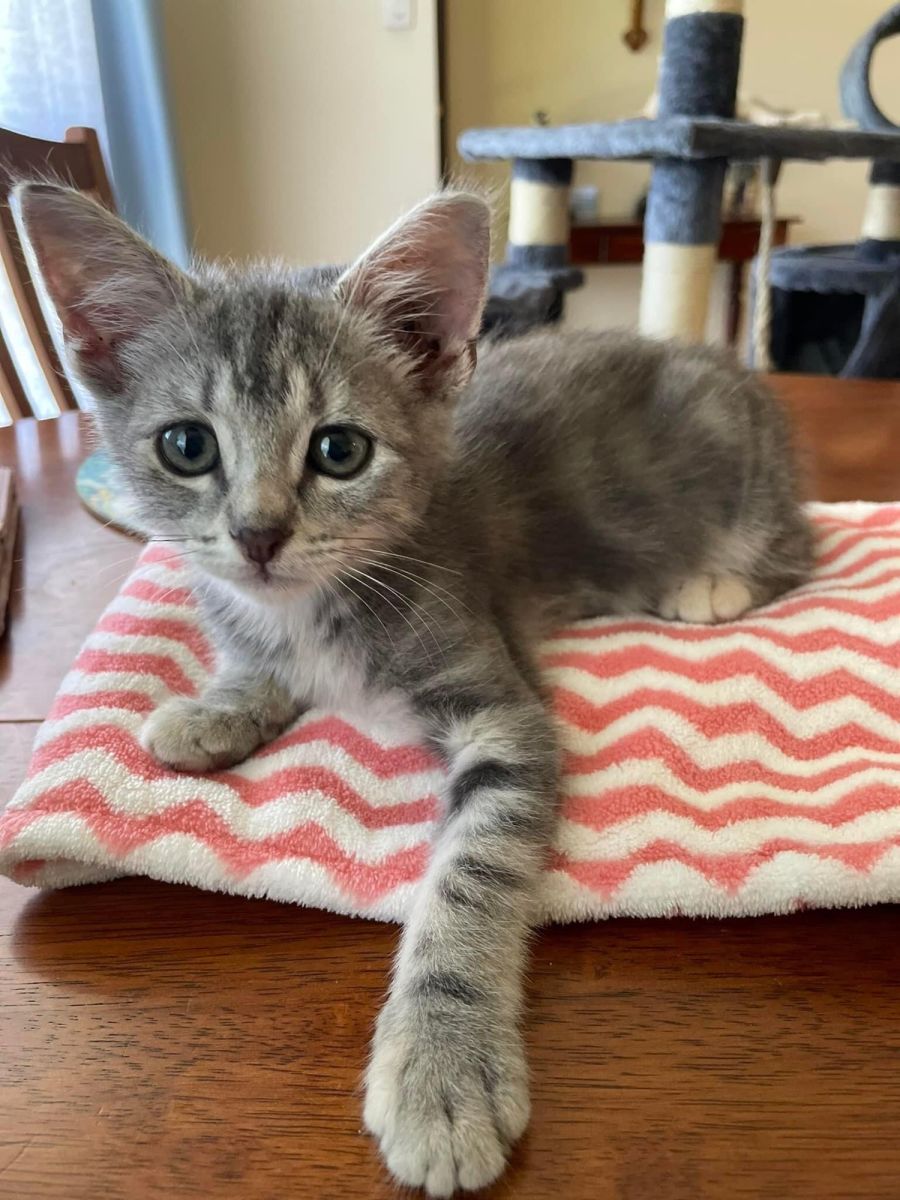 He was a little timid…..but now is such a smoochy little kitten, and will purr endlessly while being petted.