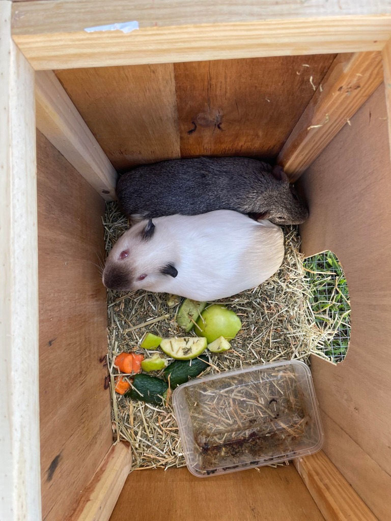 Hi, Our names are Snowy and Wilbur and we're a bonded pair of guineapig boys.