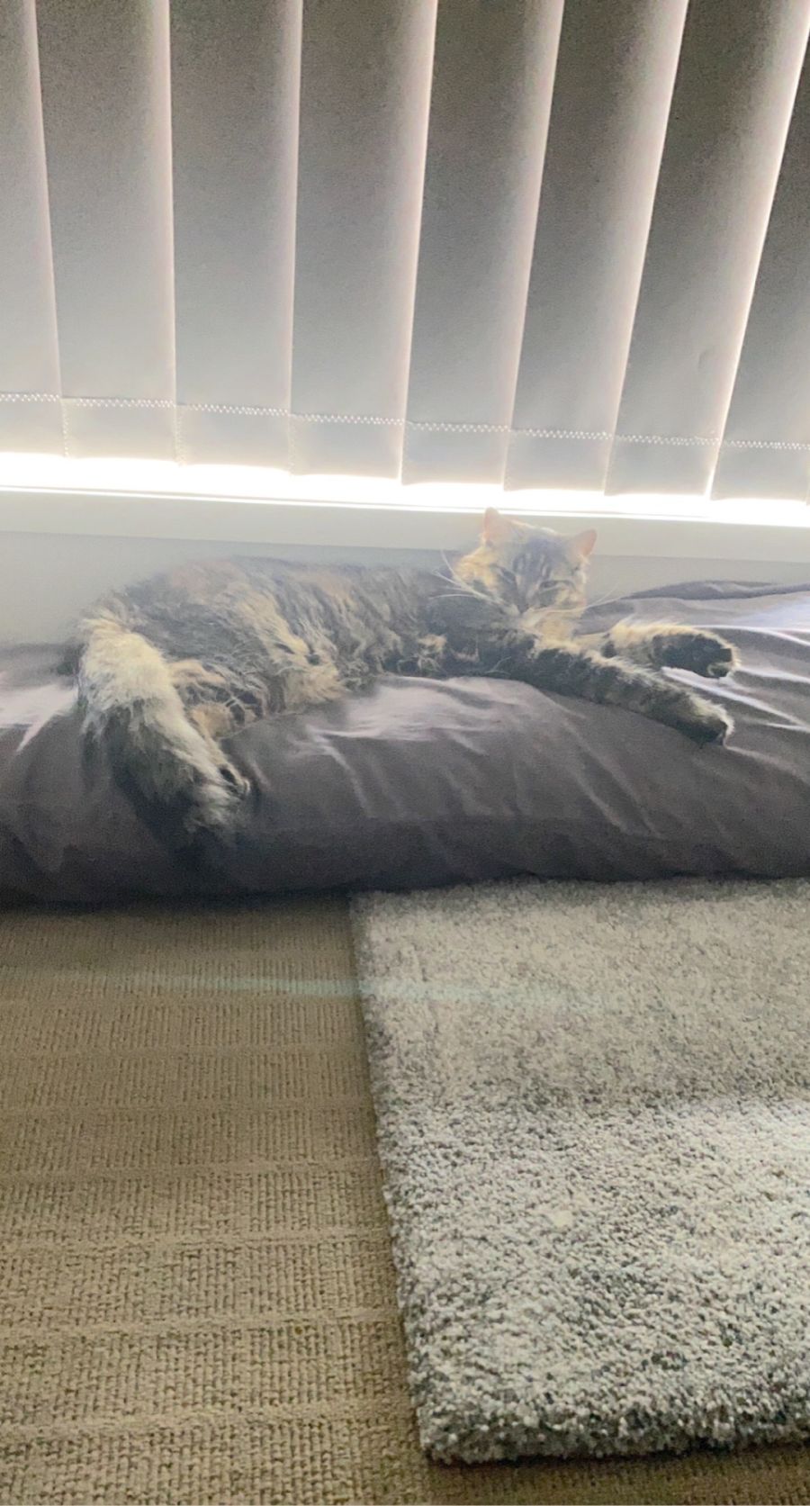 Missy is a tabby with beautifully soft, fluffy hair, and she’s very quiet. Her meow is so soft you can barely hear it! Unlike Luna, Missy prefers to spend her time inside, watching the world go by through the window. She will occasionally venture outside to lay in the sunshine. She does love the comfort of her beanbag in the house, combined with a good scratch on her scratching post!