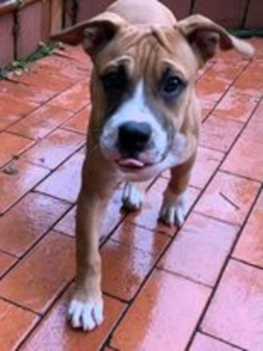 She can sit and is learning to wait/stay and walk nicely on a lead.
